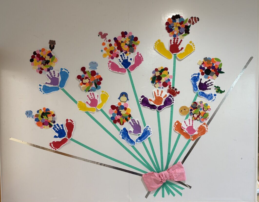 大きな丸、小さな丸カラフルなフェルトにのり付けをしてきれいな花束をプレゼントForYou💗